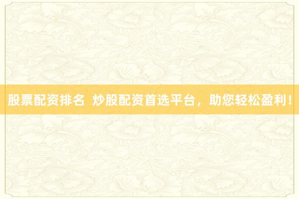 股票配资排名 炒股配资首选平台,助您轻松盈利!