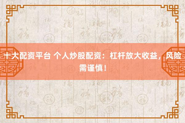 十大配资平台 个人炒股配资:杠杆放大收益,风险需谨慎!